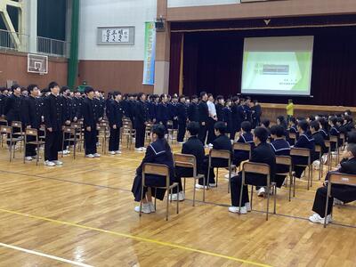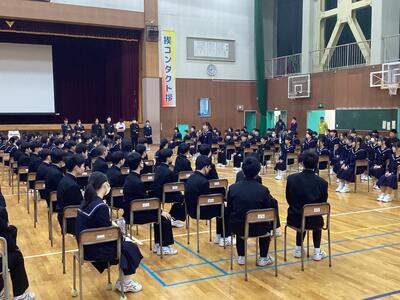 対面式がありました 投稿: 編集者1 (04/10) カテゴリー: 今日の出来事 4月9日(木)に2・3年生と1年生の対面式が行われました。執行部企画では、「進明カラーは何色か?」や「校歌の中に出てくる山と川は何か?」など学校に関するクイズが出され、楽しく学校のことを紹介していました。 Tweet -